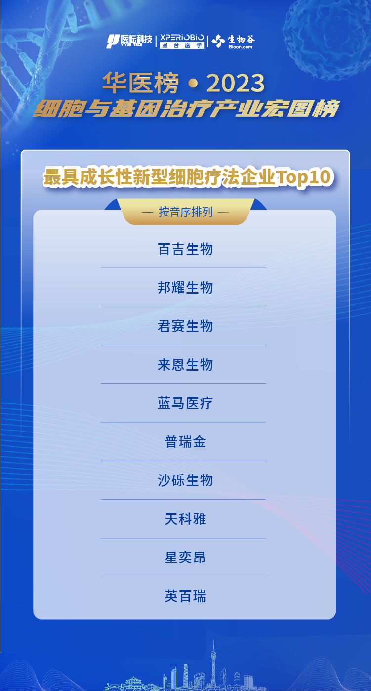 本次入選華醫(yī)榜·2023細(xì)胞與基因治療產(chǎn)業(yè)宏圖榜最具成長(zhǎng)性新型細(xì)胞療法企業(yè)Top10,是對(duì)天科雅生物在創(chuàng)新療法領(lǐng)域的能力、成長(zhǎng)力及影響力的充分認(rèn)可和肯定。天科雅生物將繼續(xù)立足自身,推進(jìn)新型細(xì)胞療法的創(chuàng)新研發(fā)與產(chǎn)業(yè)化,助力細(xì)胞治療行業(yè)發(fā)展。