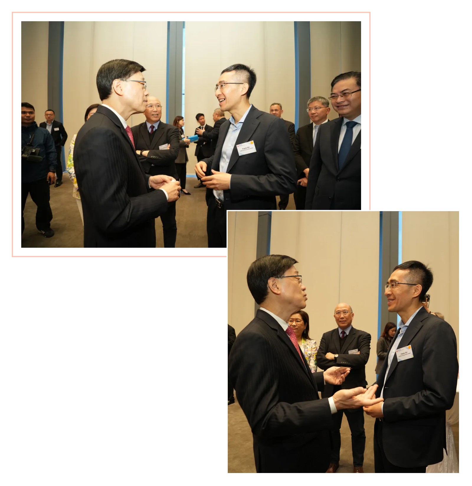 ▲行政長官李家超先生與天科雅董事長蘇震波先生交流